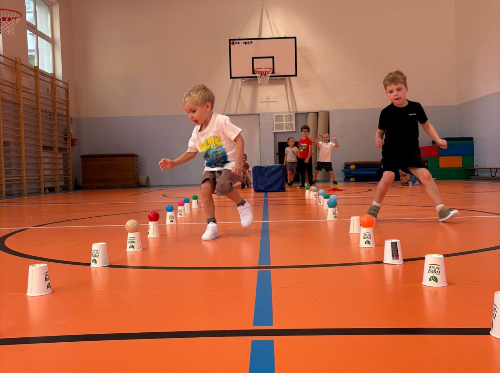 Ruchowe zajęcia na sali gimnastycznej