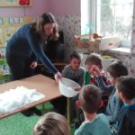 Podczas zajęć panie dzieliły się z dziećmi wiedzą z dziedziny chemii, fizyki, biologii
