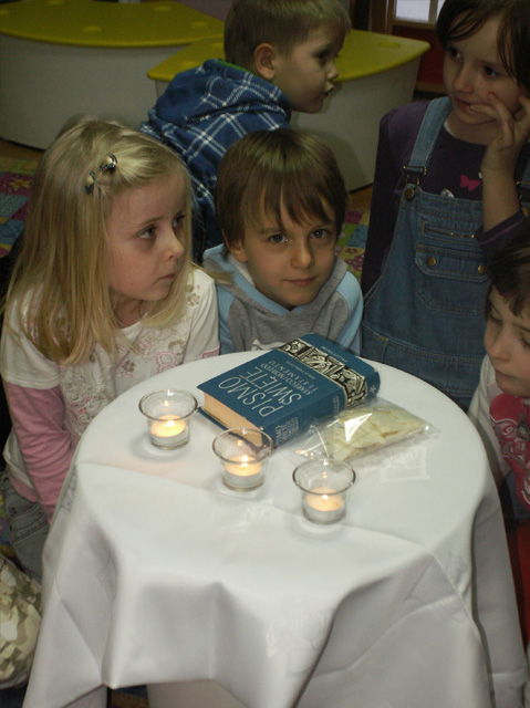 Zgodnie z życzeniem Rodziców wprowadziliśmy zajęcia religii, prowadzone przez panią katechetkę (dla Starszaków i Zerówkowiczów).