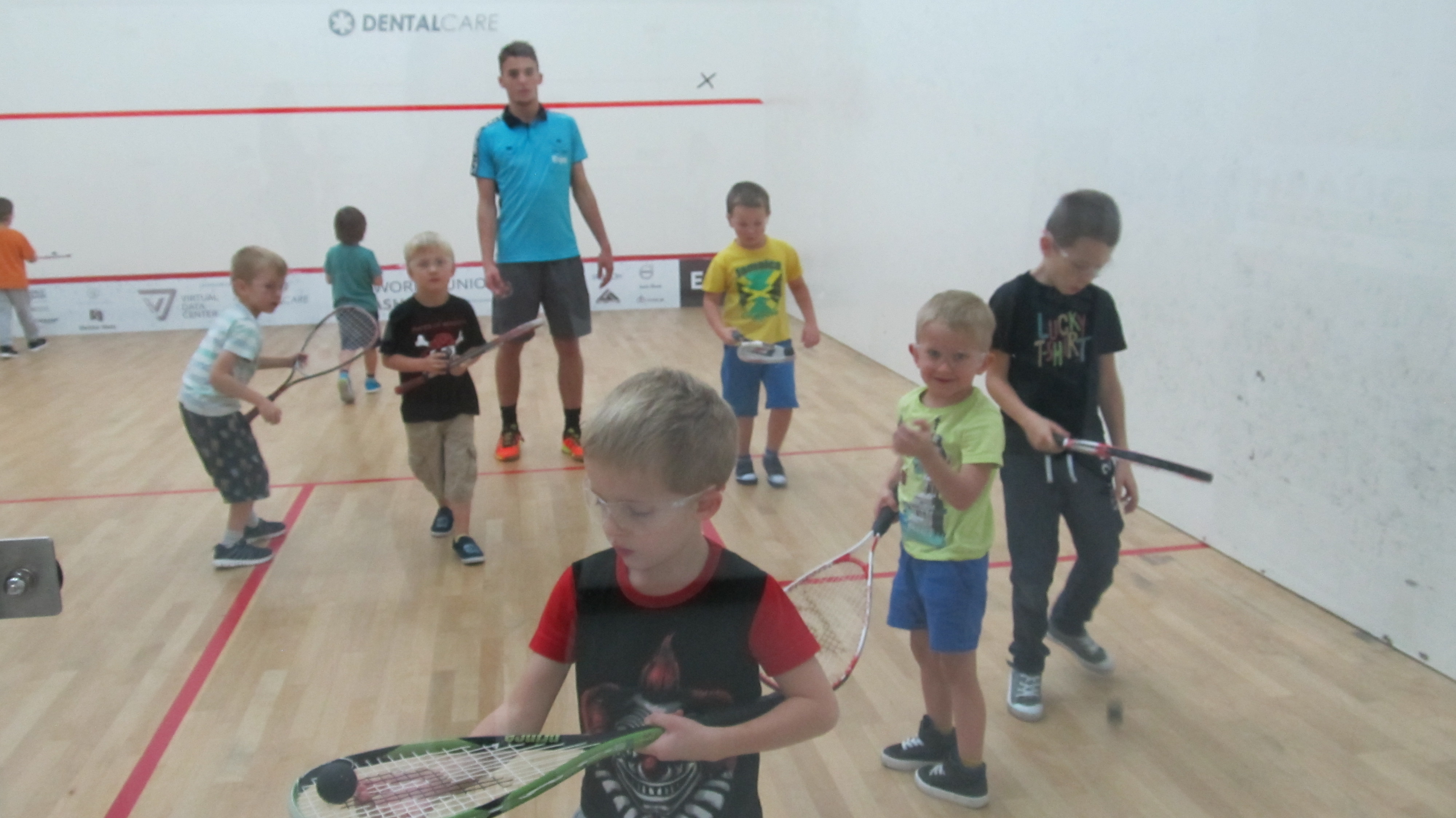 Instruktorzy squasha poprzez zabawę wprowadzali dzieci w reguły gry, zasad fair-play oraz podnosili sprawność fizyczną Groszków.