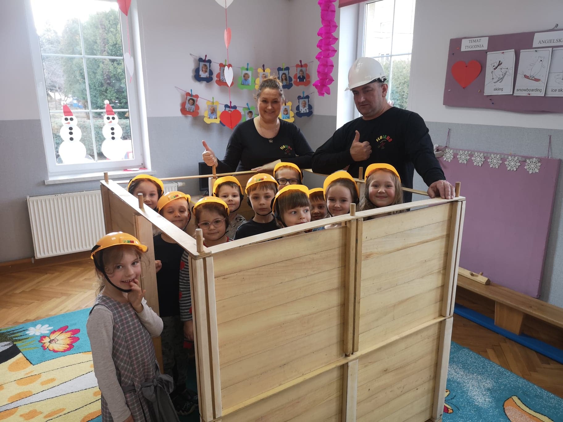 Po raz kolejny powróciłyśmy do współpracy z Panią Moniką, która podczas zajęć w przedszkolu przybliżała Groszkom techniczne strony drewnianych konstrukcji, w pełni angażując dzieci w cały proces