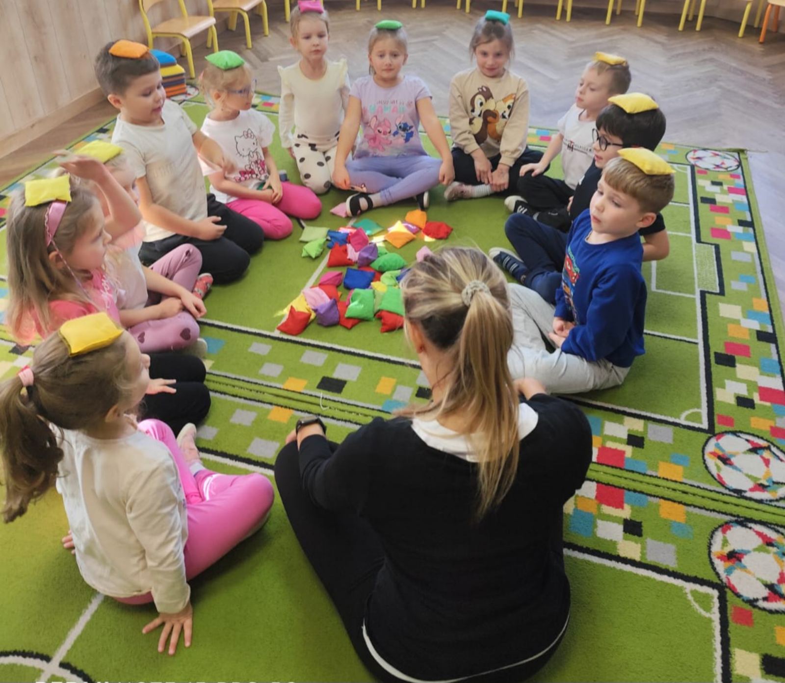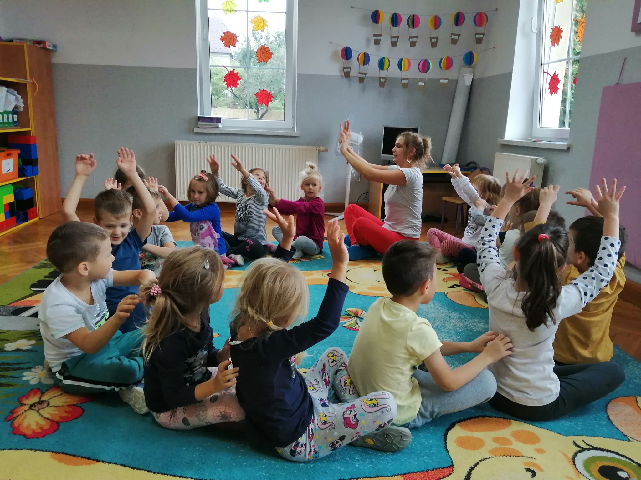 Pani Martyna z "Magicznej jogi" wprowadzała Groszki w ćwiczenia rozciągające, wykorzystując pozycje z jogi.